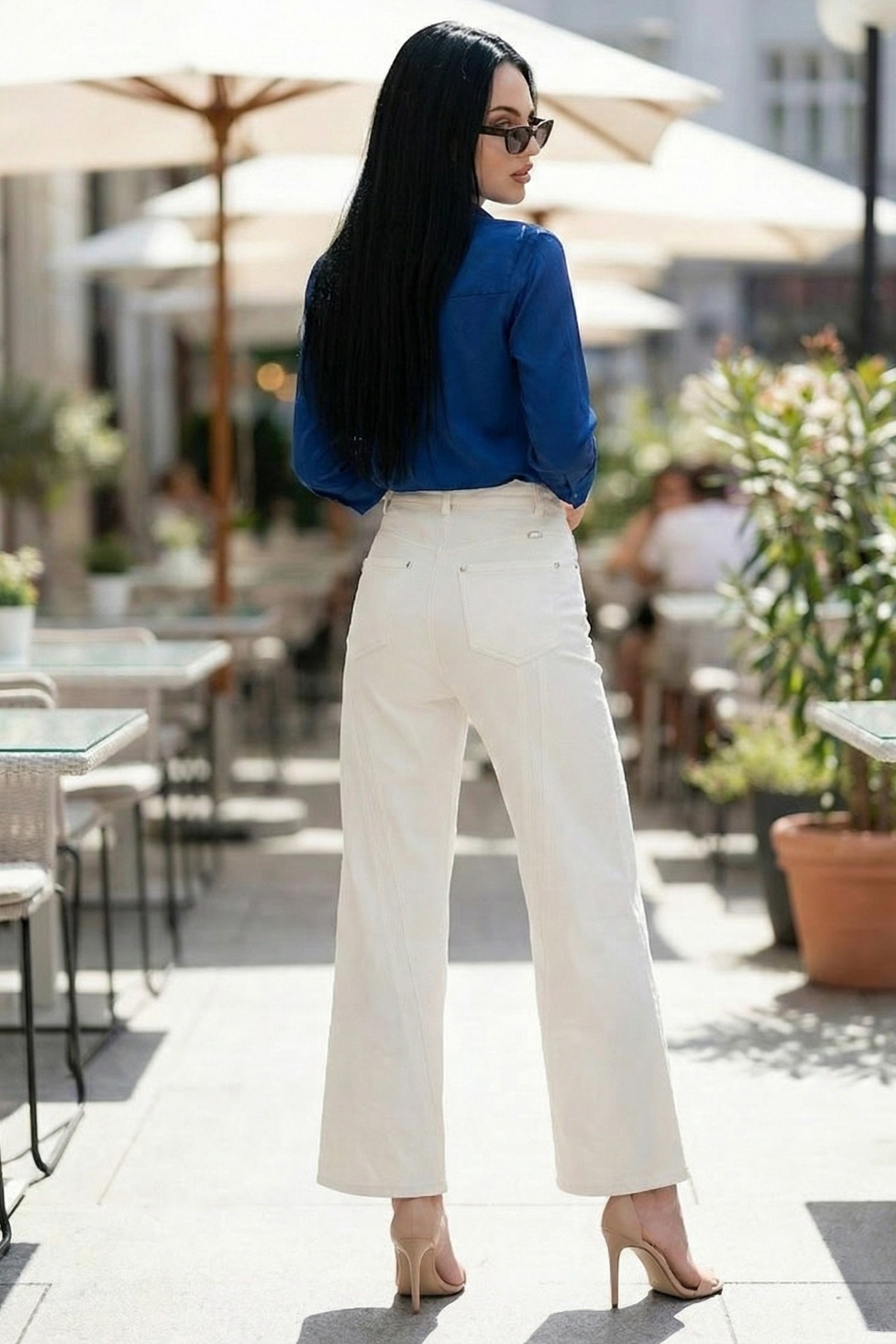 силуета, издължава краката и осигурява комфорт през целия ден. Дънките са с множество функционални джобове, декоративни тегели и гайки за колан, което ги прави подходящи както за ежедневна визия, така и за стилен градски аутфит. Идеални за комбиниране с блузи, сака и елегантни обувки. Перфектен избор за модерната жена, която търси комфорт и изискан външен вид.
