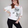 Свободният модел до талията подчертава женствеността и елегантността на блузата. Тази блуза е перфектният избор за всяка дама, която иска да изглежда стилно и удобно. Нейната уникална комбинация от качество, комфорт и дизайн ще ви помогне да се откроите, където и да сте.