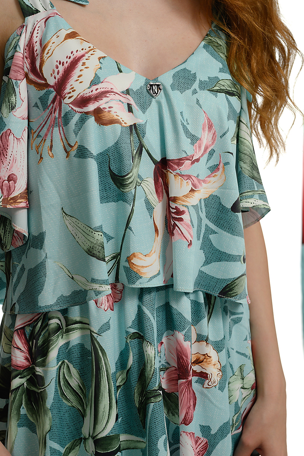 Моделът е декориран с волани на няколко нива, които придават романтичен и женствен вид.