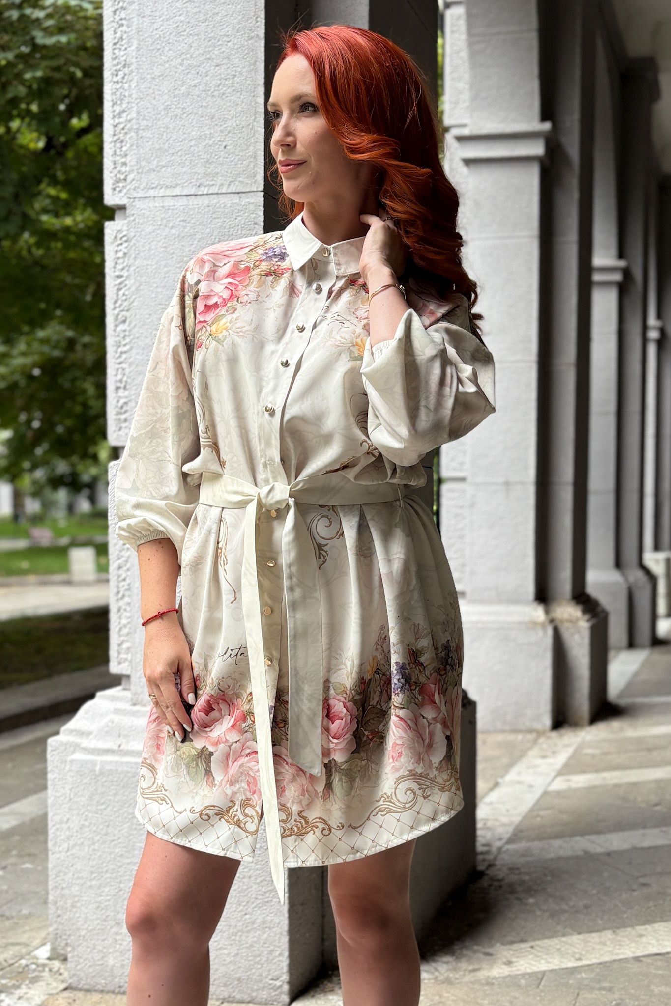 Стилна дамска рокля тип риза в дизайнерски принт. Моделът съчетава удобство и елегантност, което го прави подходящ както за ежедневието, така и за специални поводи.