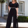 Свободният панталон и красивите, разкроени къси ръкави ви позволяват да се движите свободно и да се наслаждавате на всяка минута от събитието.