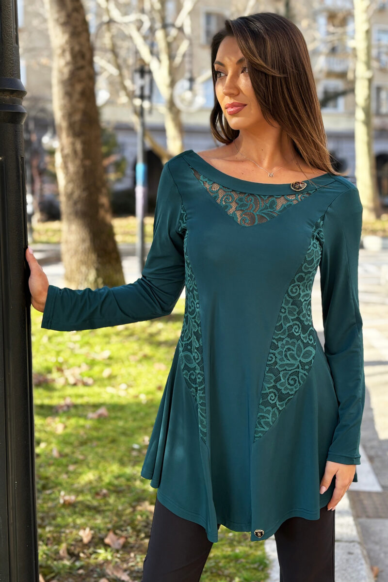 С нашата туника с дантела в зелено, ще се чувствате стилно и уверено, независимо от повода!