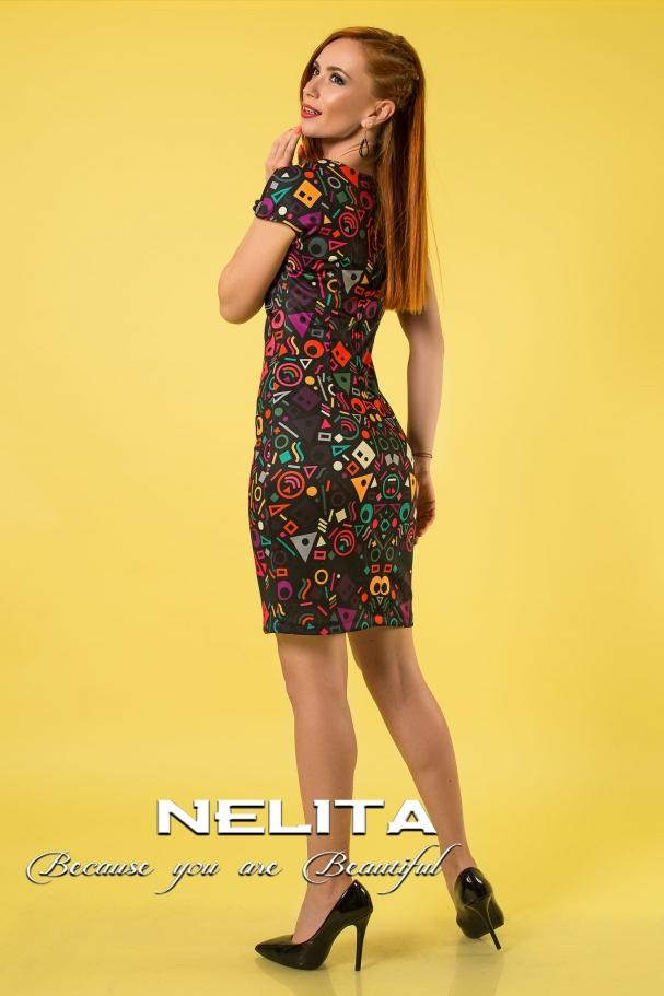 Елегантна рокля с дизайнерски принт е стилна и модерна визия за всяка жена. Роклята е изработена от качествена еластична материя, която се адаптира към тялото и подчертава фигурата. Роклята има полу ръкав, обло деколте и дължина до коляното, което я прави подходяща за различни поводи. Роклята се закопчава със скрит цип на гърба за лесно и удобно обличане. Роклята има еластична подплата, която предпазва от прозиране. Роклята е украсена с уникален дизайнерски принт, който приковава погледите и придава оригиналност на тоалета.