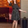 Елегантна рокля NELITA с дизайнерски принт точки. Елегантна рокля с късо дантелено ръкавче.Роклята е в комбинация с дантела и кожа.Горната част е вталена,подчертаваща бюста и талията а долната е разкроена.Роклята се закопчава със скрит цип на гърба.Много кокетен модел подходящ за много събития.
