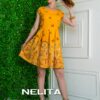 Елегантна рокля срязана в талията.Красив и модерен дизайнерски принт.Материята е еластична ,моделът е по свободен в талия.Има декорация от къдкрички в предната част.Има имитация на джоб.Закопчава се със скрит цип на гърба.Моделът е сполучлив,удобен и подходящ за доста поводи-официални и не чак толкова такива.
