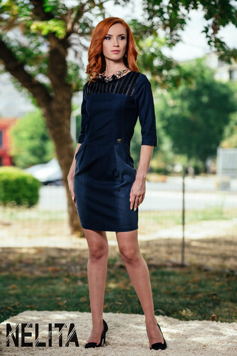 Елегантна рокля от деним. Рокля с 3/4 ръкав