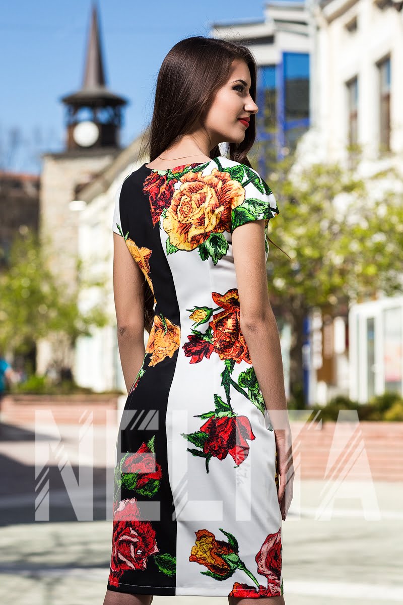 Елегантна рокля с дизайнерски принт е стилна и модерна визия за всяка жена. Роклята е изработена от качествена еластична материя, която се адаптира към тялото и подчертава фигурата. Роклята има полу ръкав, обло деколте и дължина до коляното, което я прави подходяща за различни поводи. Роклята се закопчава със скрит цип на гърба за лесно и удобно обличане. Роклята има еластична подплата, която предпазва от прозиране. Роклята е украсена с уникален дизайнерски принт, който приковава погледите и придава оригиналност на тоалета.