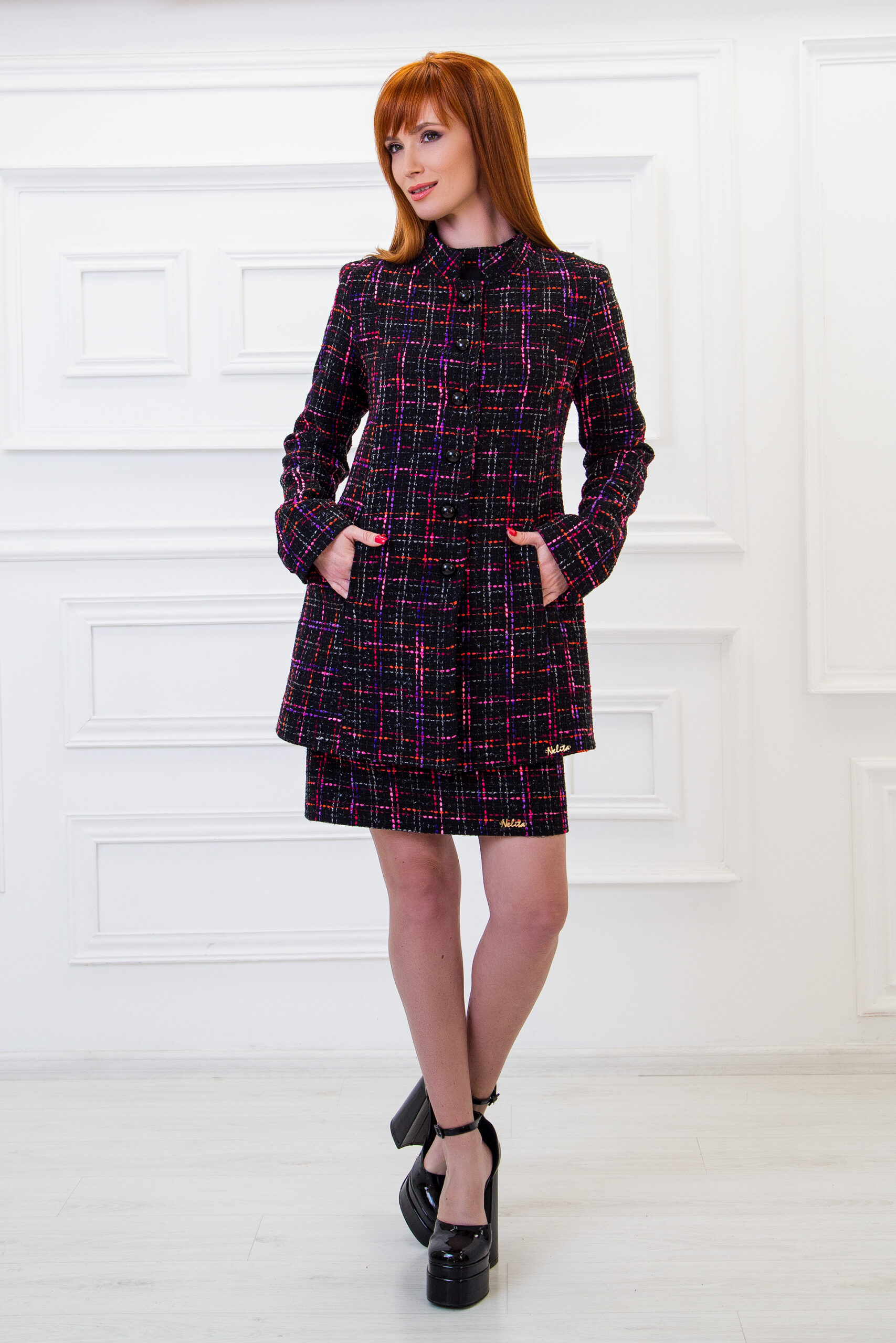 Елегантно палто от букле. Палто Nelita с подплата от сатен. Елегантно палто с копчета.