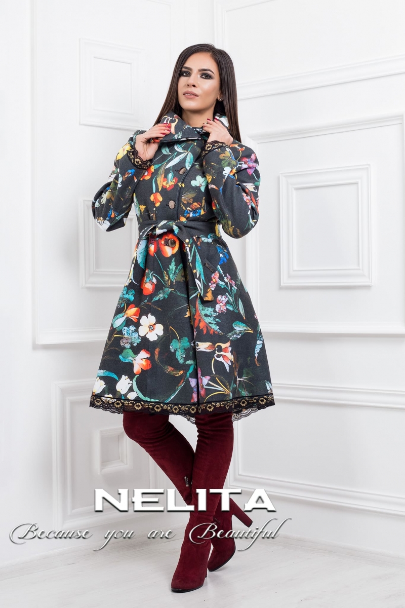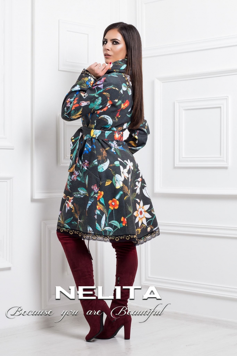 Разкроено дамско палто с елегантна линия и изискан дизайнерски флорален принт. Моделът е създаден за стилна визия и удобство във всеки сезон.