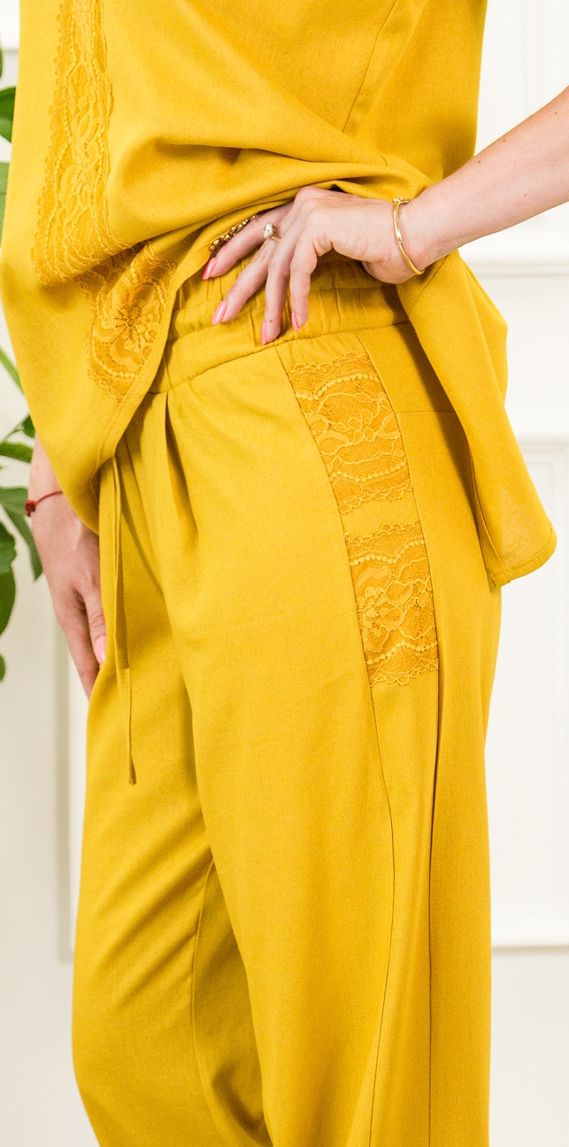 Изработен от лен в цвят горчица.