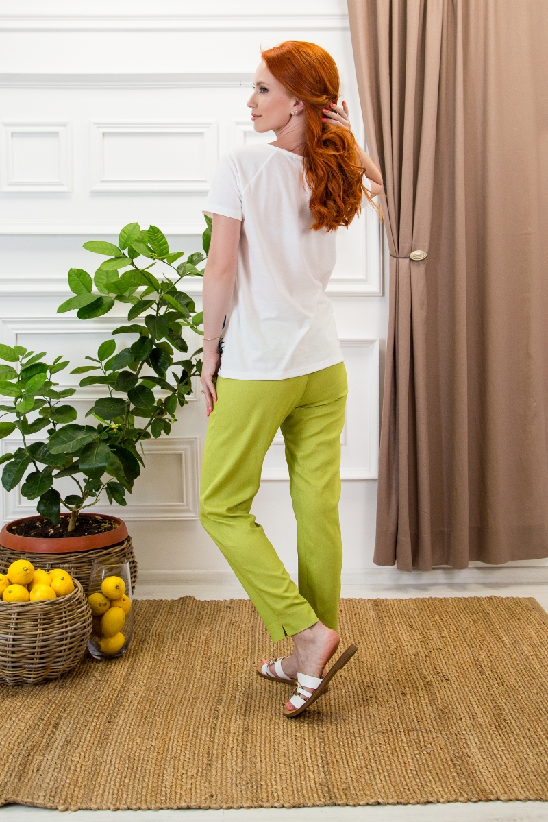 Спортно-елегантен комплект от блузка с модерен принт и ленен панталон.
