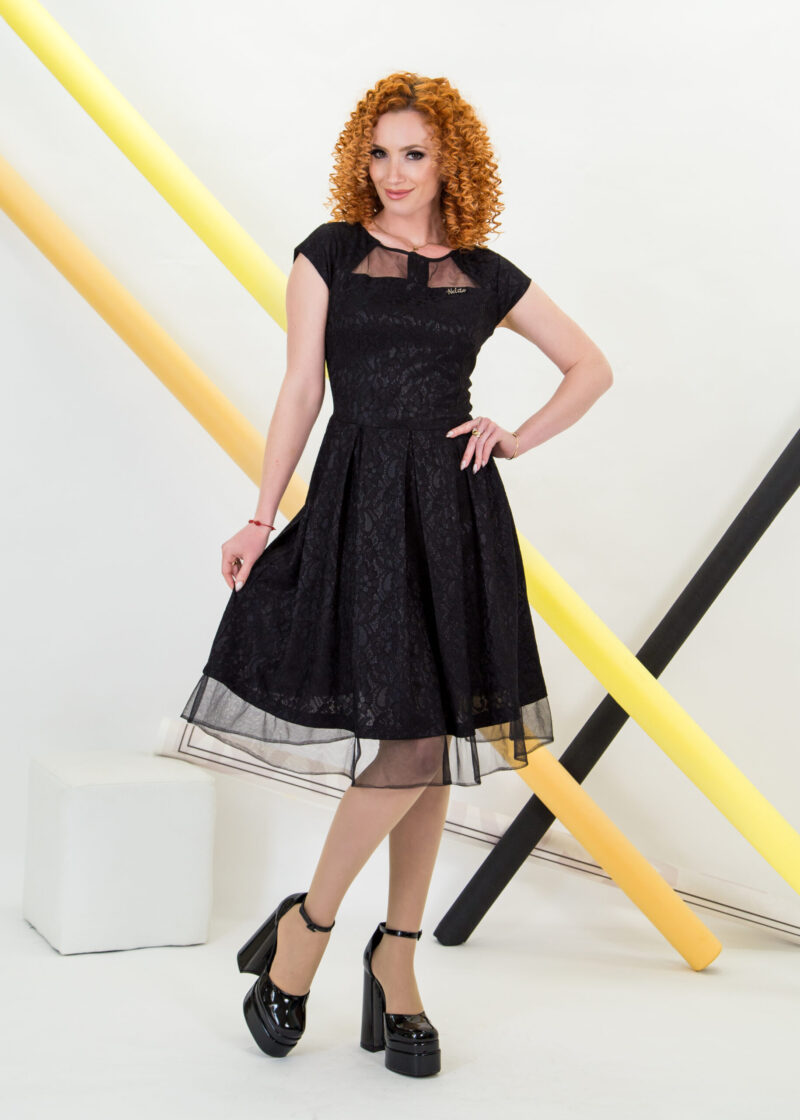 Тази рокля NELITA в цвят релефен черен жакард е правилният избор за всеки повод,както и за вашата идеална и перфектна визия.