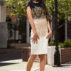 Дължината на роклята е около коляното,която и придава женственност и стил.