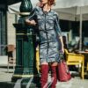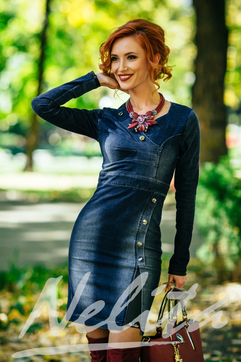 Рокля от деним е изработена от силно еластичен деним.Роклята е със дълъг ръкав.