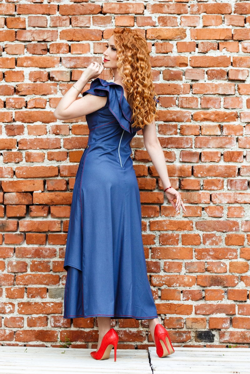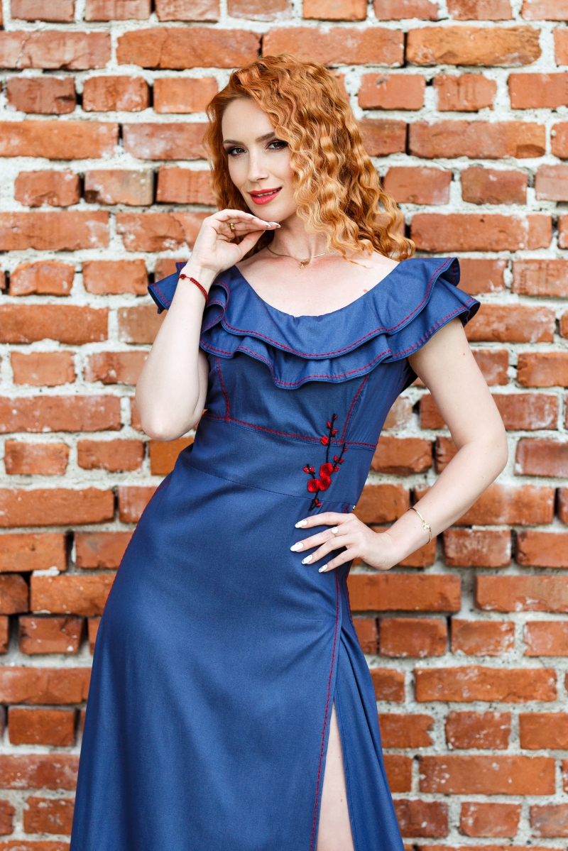 Спортно-елегантна рокля NELITA с харбалета. Дълга елегантна рокля с множество къдри при деколтето.