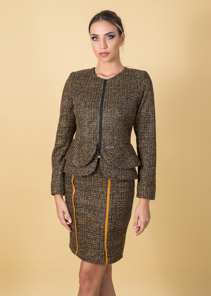 - Сако: Сакото е вталено с къдри в долната си част, което придава женственост и стил. Хастарът е изработен от сатен, който придава допълнителен комфорт и луксозен вид.