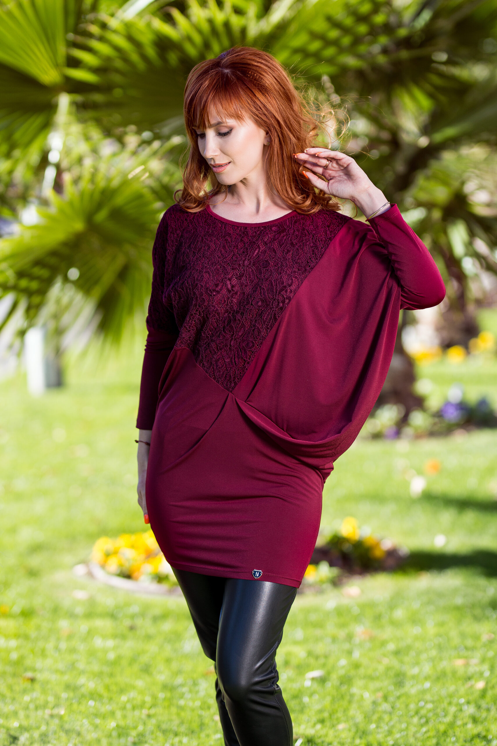 Тази туника Nelita е перфектната дреха за всеки, който търси комфорт и стил. Материята трико прави туниката еластична и удобна за носене. Обло деколте и свободният модел я правят подходяща за всяка фигура. Ръкавите са удобни по ръката, което я прави още по-приятна за носене. Дантелата е във същият бордо цвят.